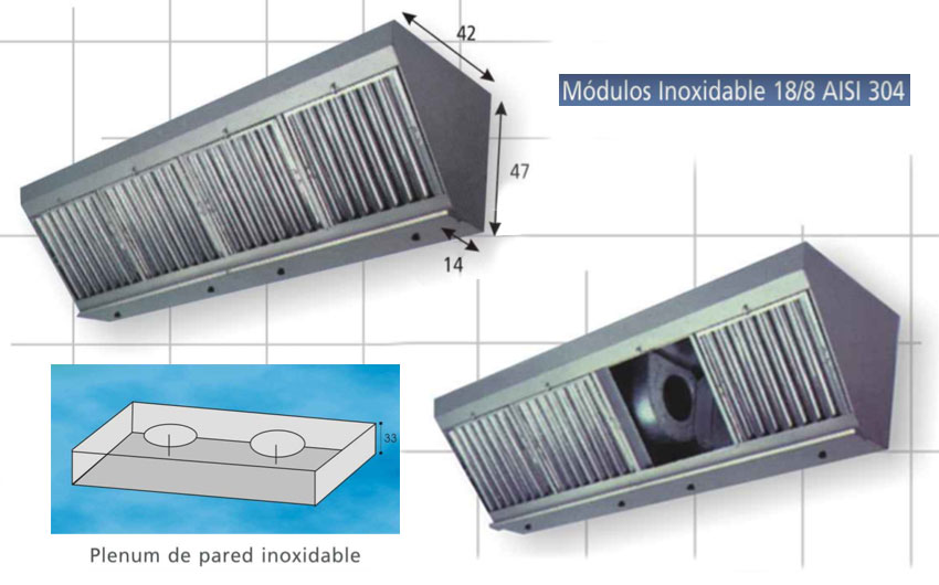 Campanas pared con filtros de acero inoxidable tipo Cafeteria